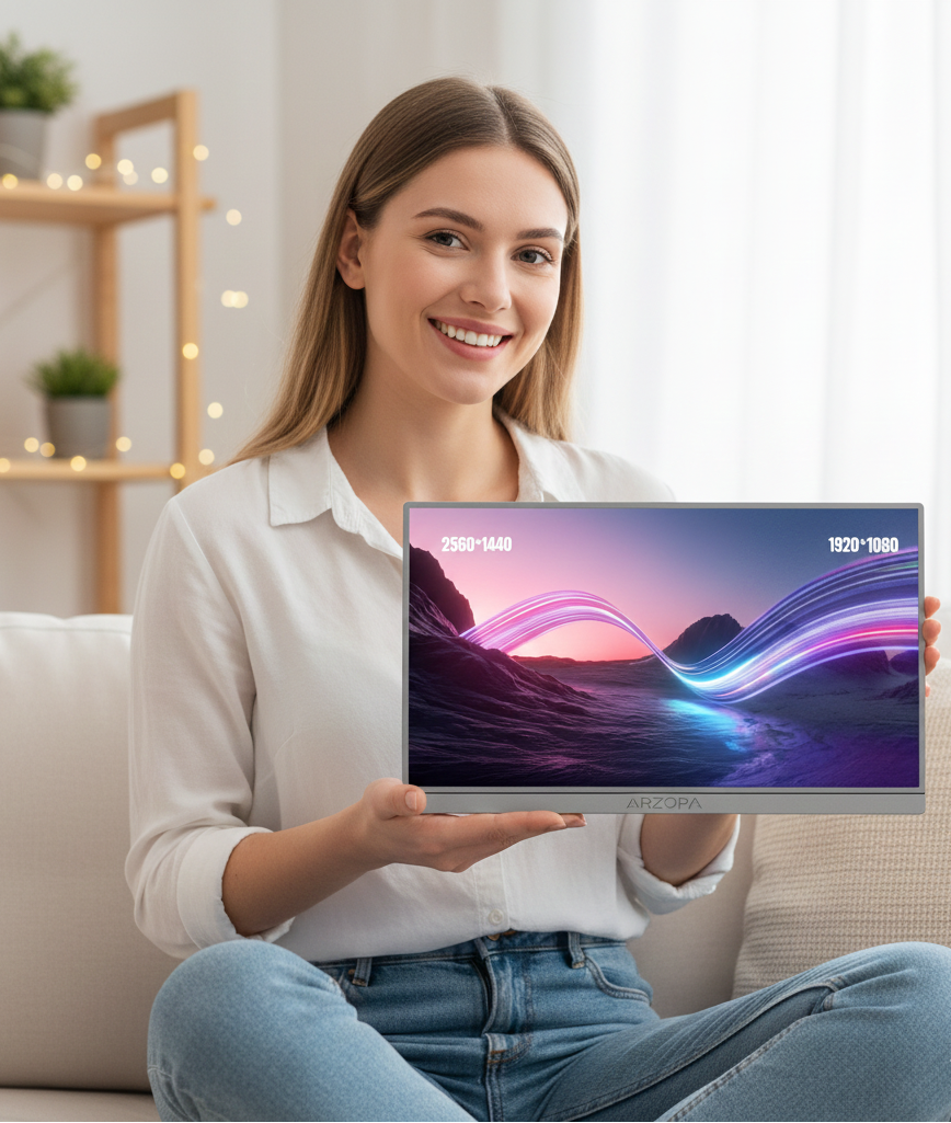 ARZOPA 16.1 180Hz Portable Monitor-Z3FC Gray, 107% sRGB 2.5K Kickstand Portable Monitor with HDR