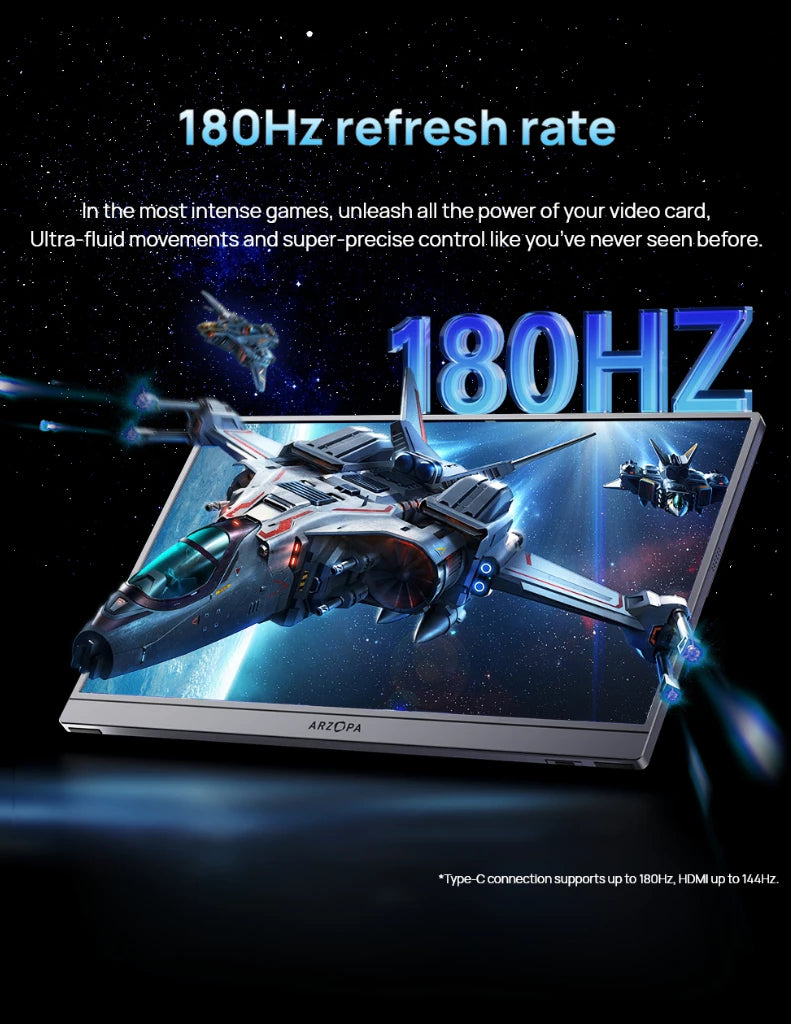 ARZOPA 16.1 180Hz Portable Monitor-Z3FC Gray, 107% sRGB 2.5K Kickstand Portable Monitor with HDR