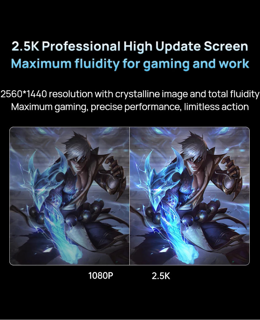 • Clarity: The 2560*1440 resolution delivers a significantly more crystalline image with greater detail than standard 1080P.