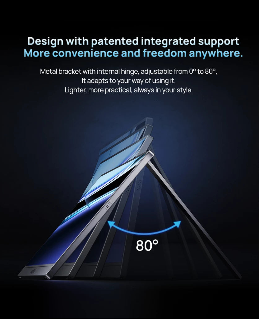 Designed with a built-in adjustable stand, you can freely tilt the screen for the most comfortable viewing angle. Slim, lightweight, and travel-friendly — ideal for professionals and gamers on the go.
