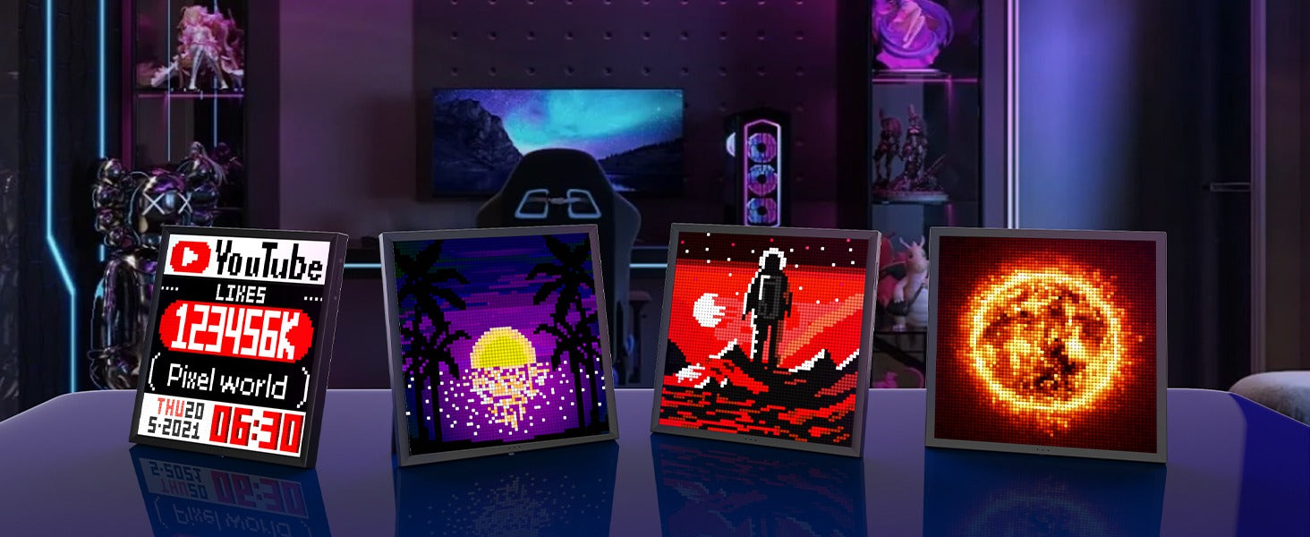 【Meet Pixoo-64】 10.3" Wi-Fi pixel art frame with a 64×64 LED matrix. Use it as a pixel clock or a live info board for followers, Twitch stats, game KDA, and more.【Create with Divoom App】 Draw, animate, add scrolling text, and import GIFs. Explore a huge community gallery to download, share, and collaborate.